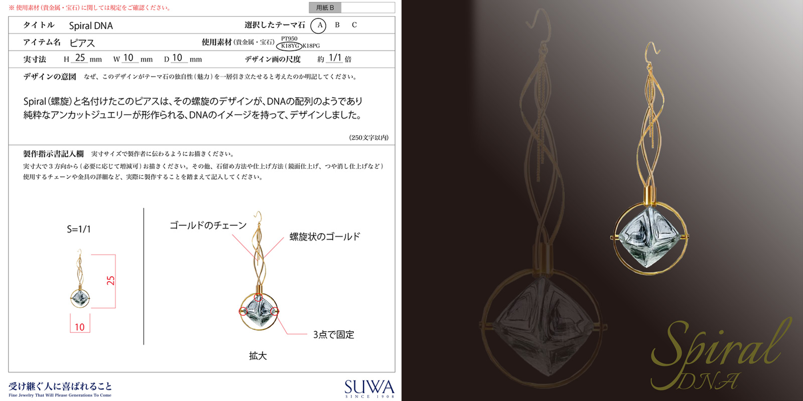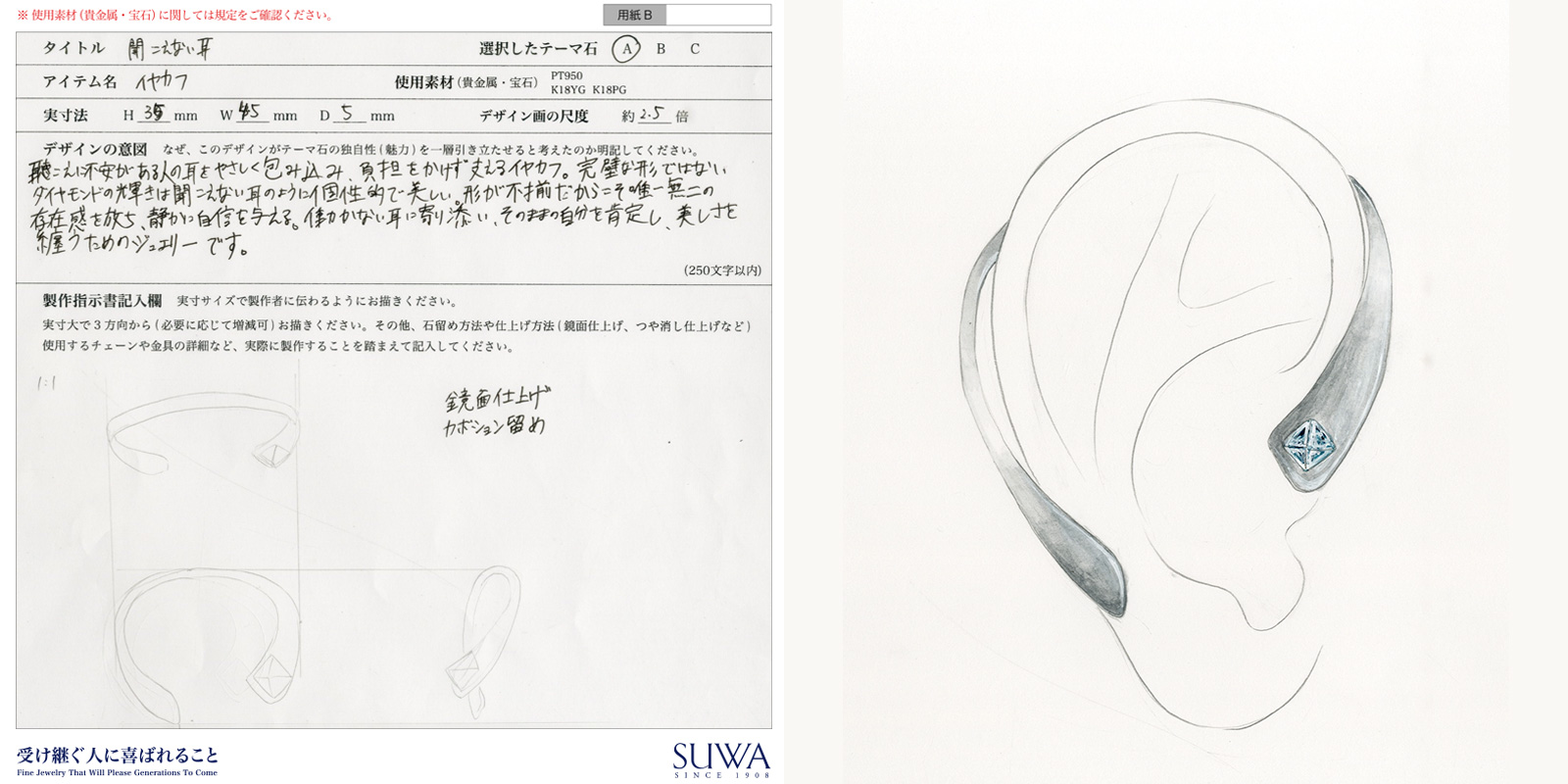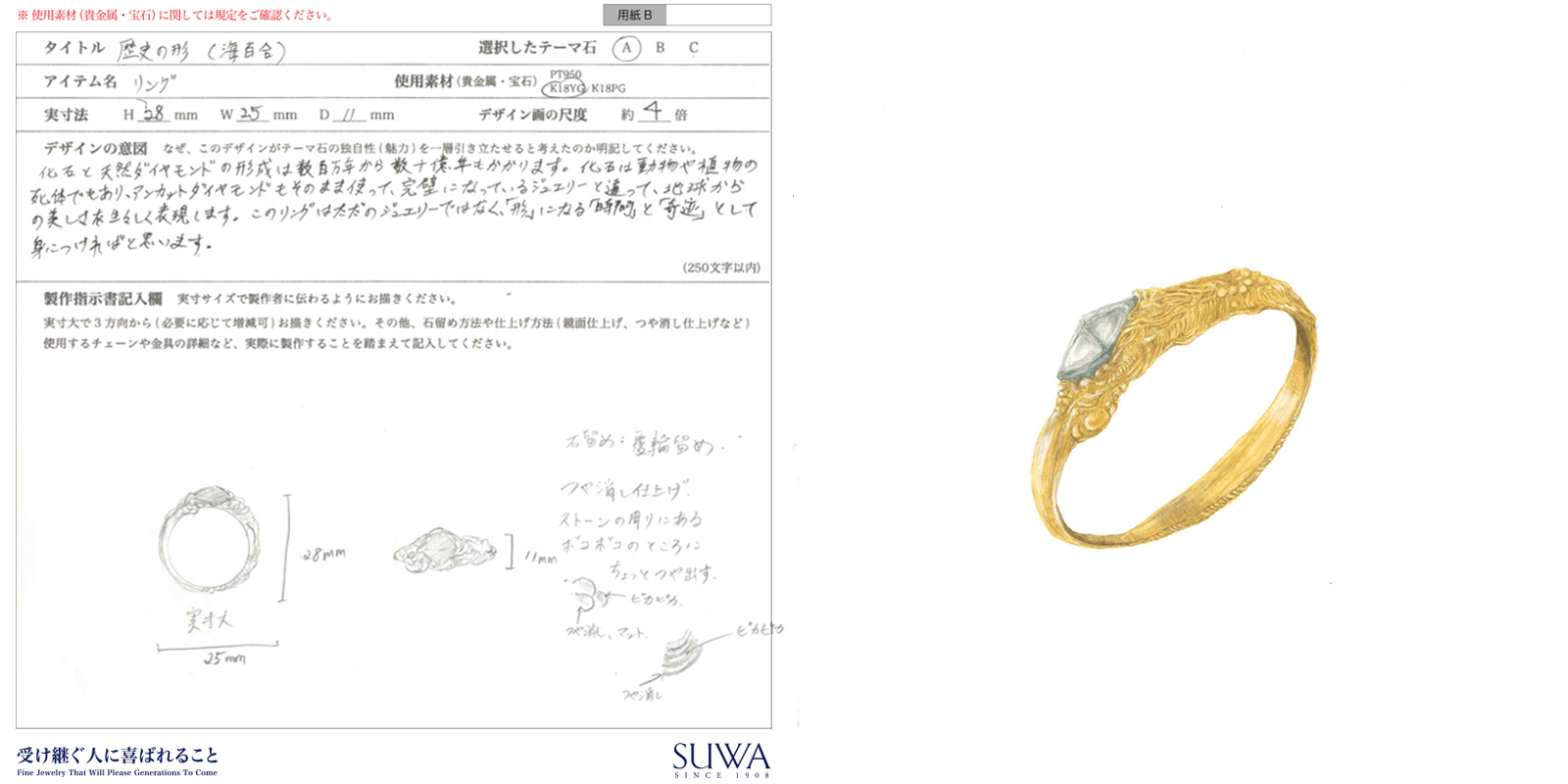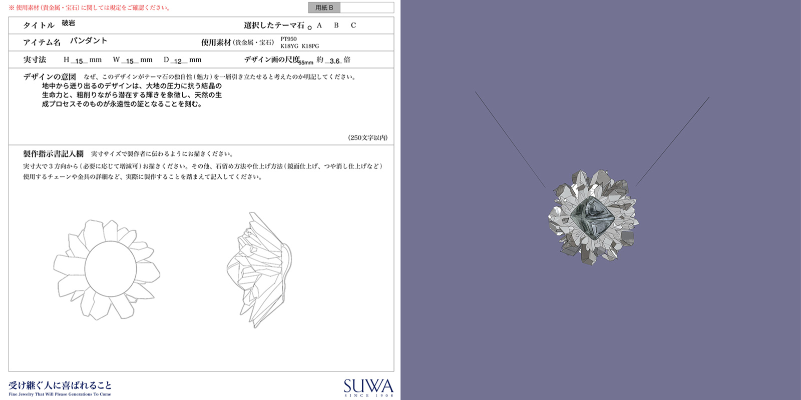 審査基準・独自性 アンカットダイヤモンド (人の手を加えていない、自然のままで美しいダイヤモンド) の魅力をより一層引き立てているか。