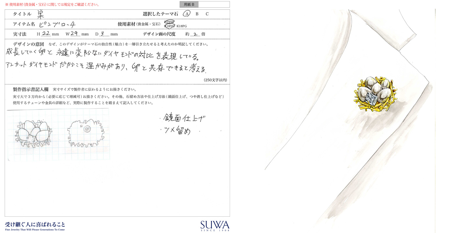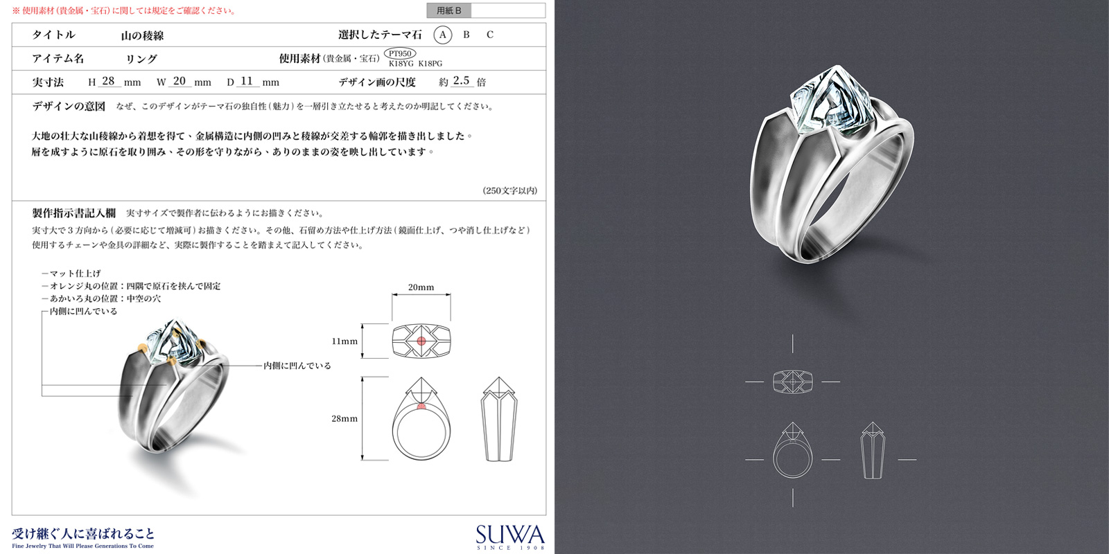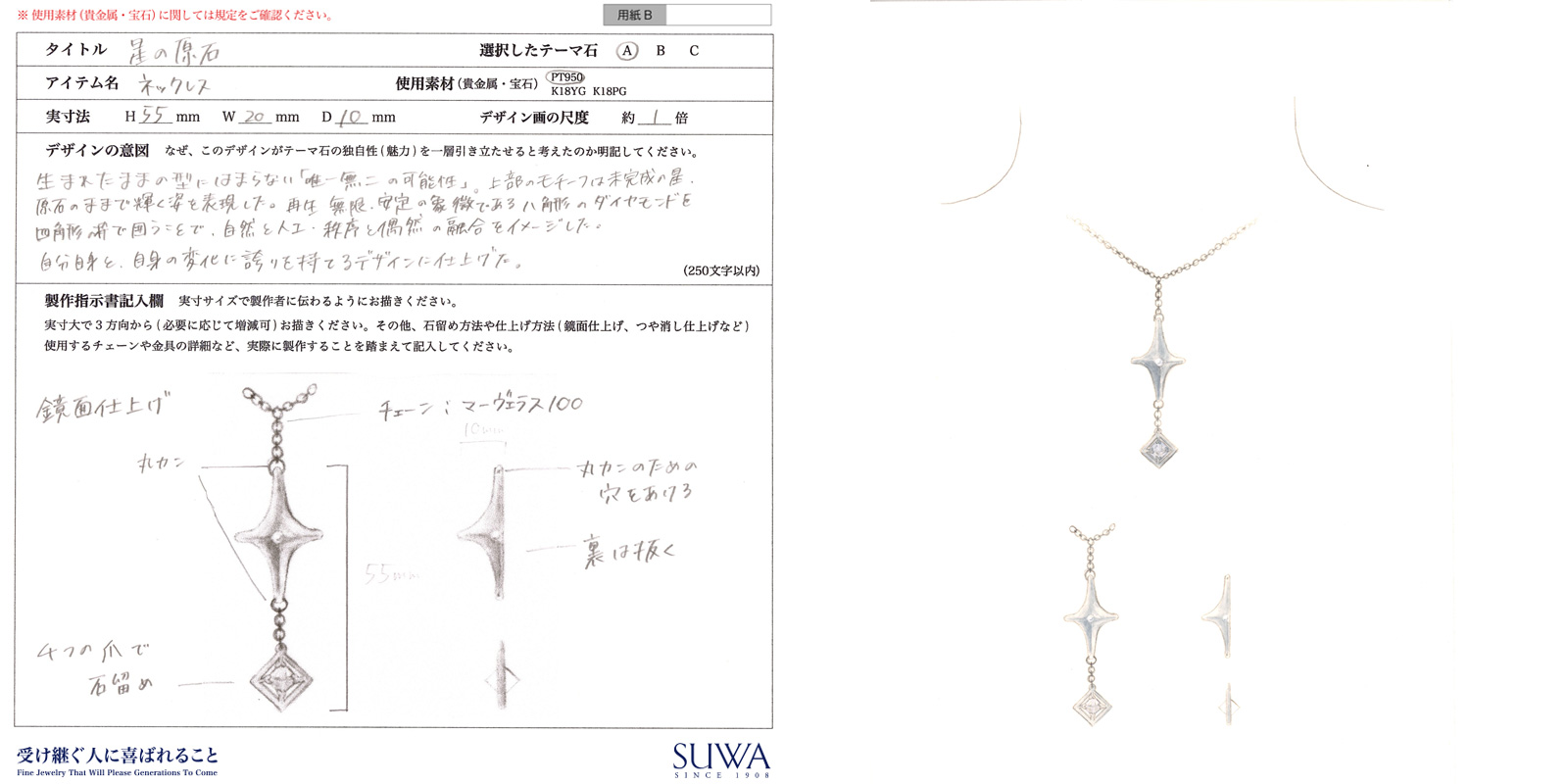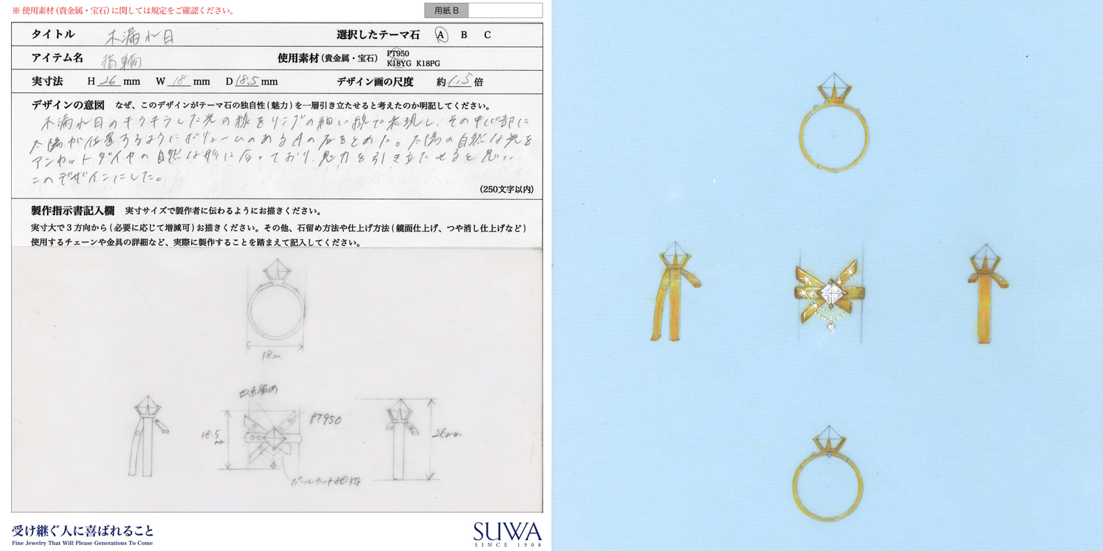 審査基準・独自性 アンカットダイヤモンド (人の手を加えていない、自然のままで美しいダイヤモンド) の魅力をより一層引き立てているか。