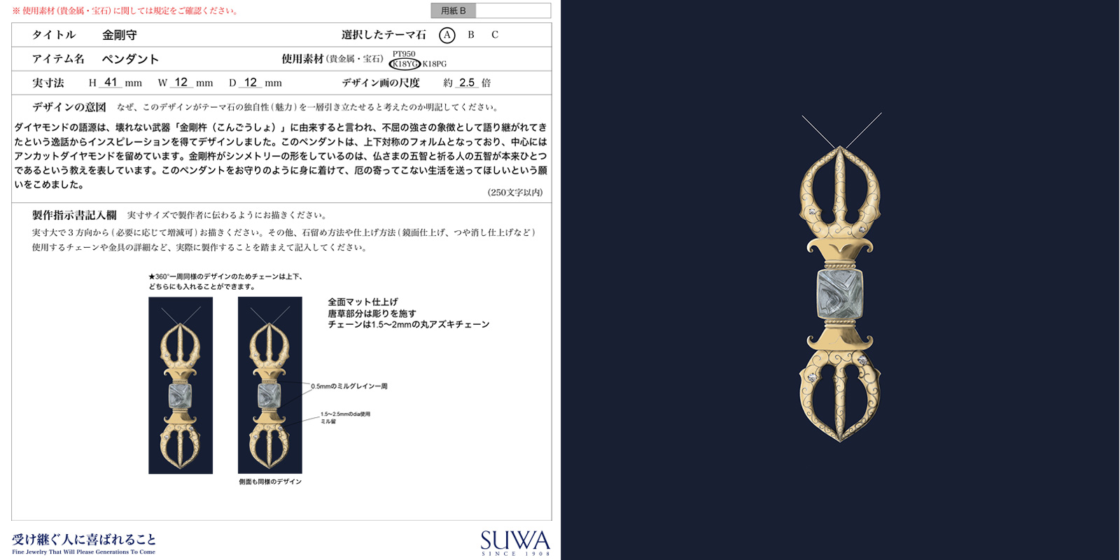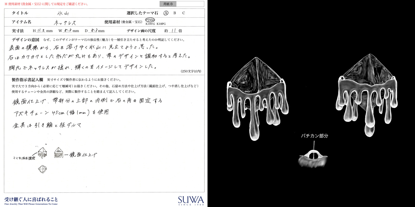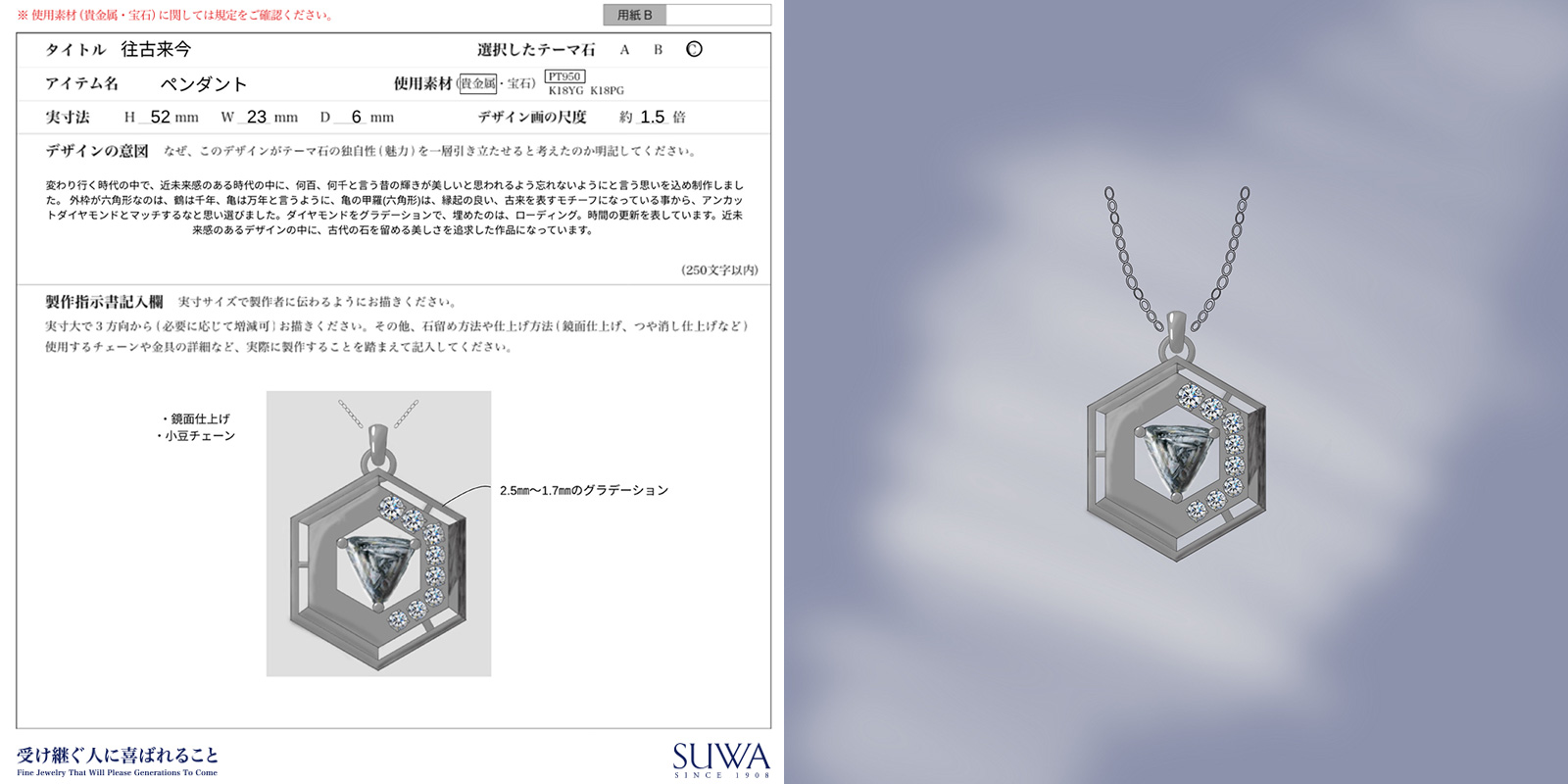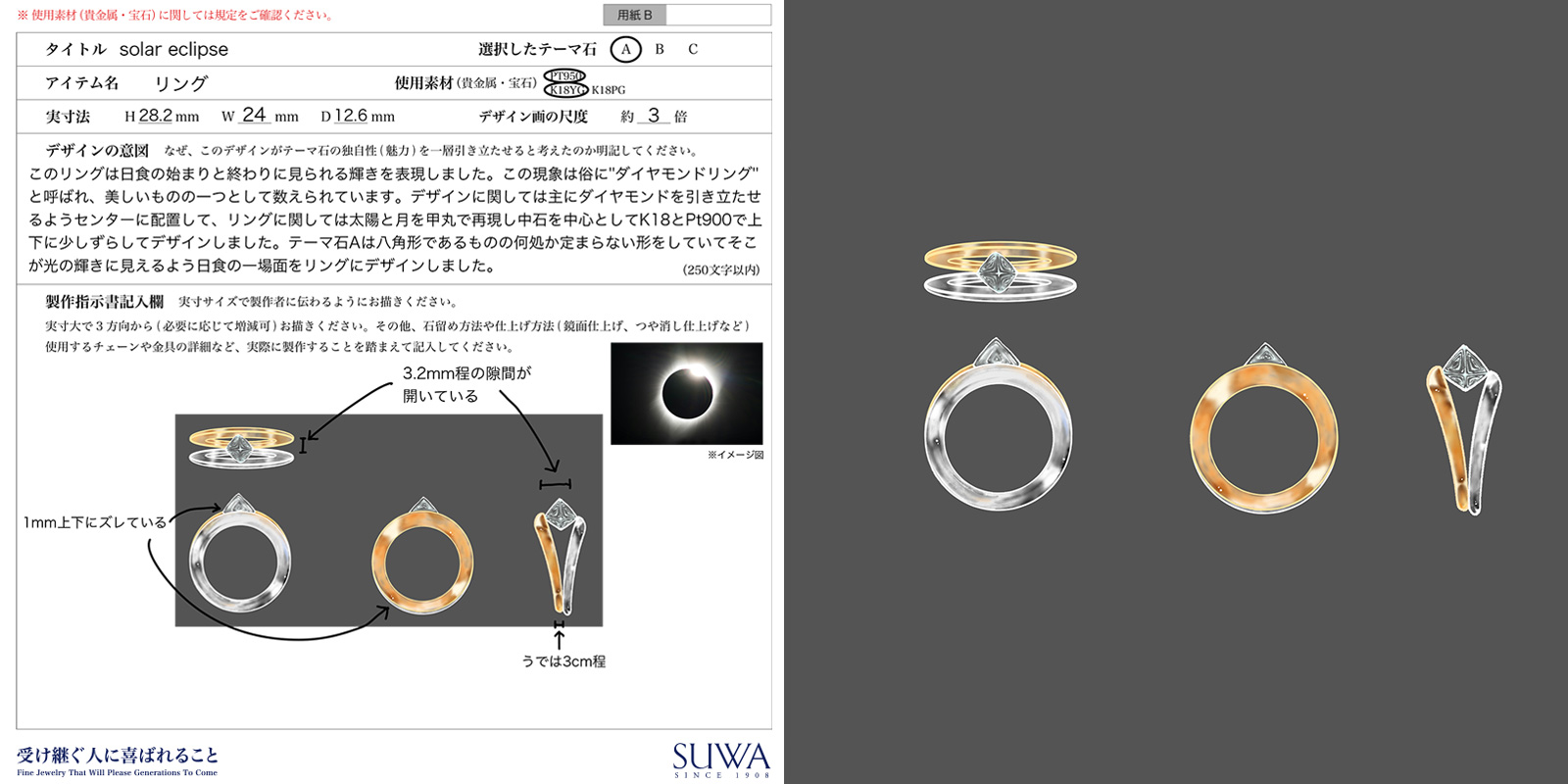 審査基準・独自性 アンカットダイヤモンド (人の手を加えていない、自然のままで美しいダイヤモンド) の魅力をより一層引き立てているか。
