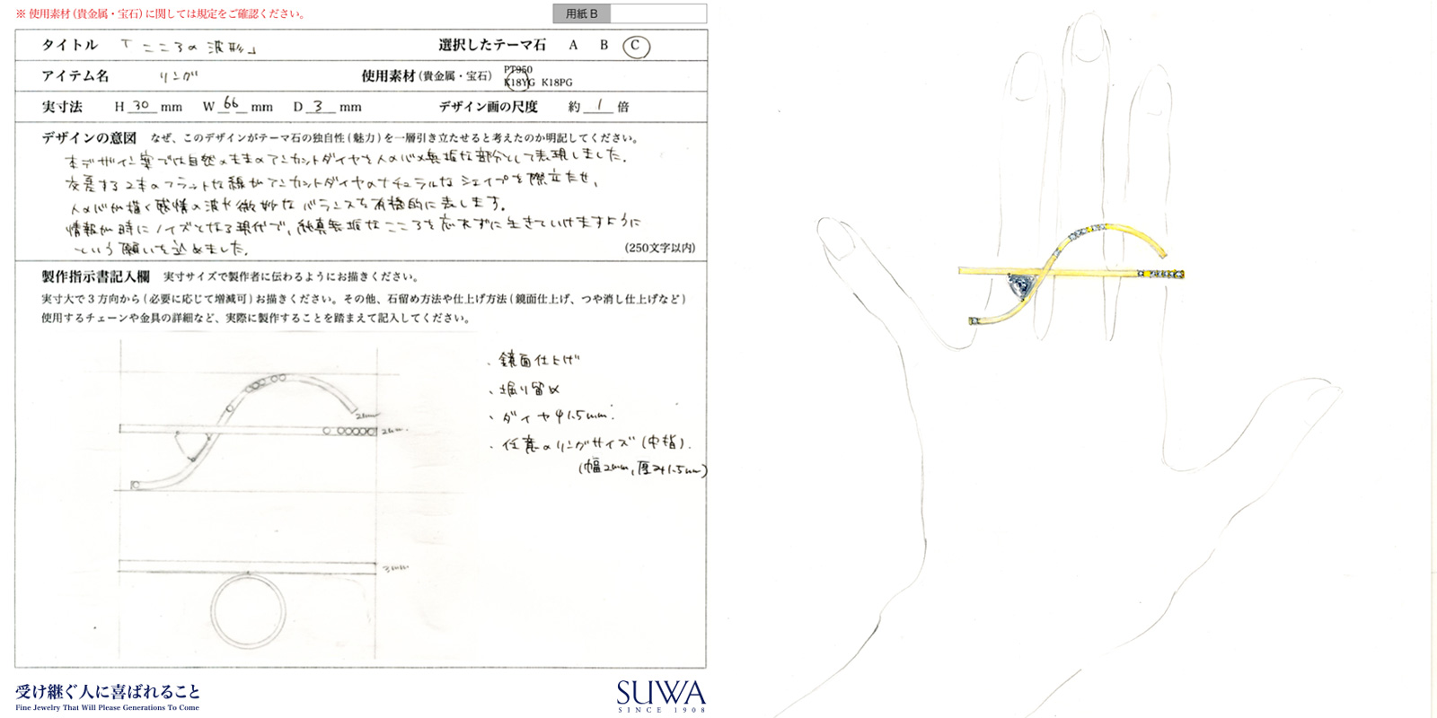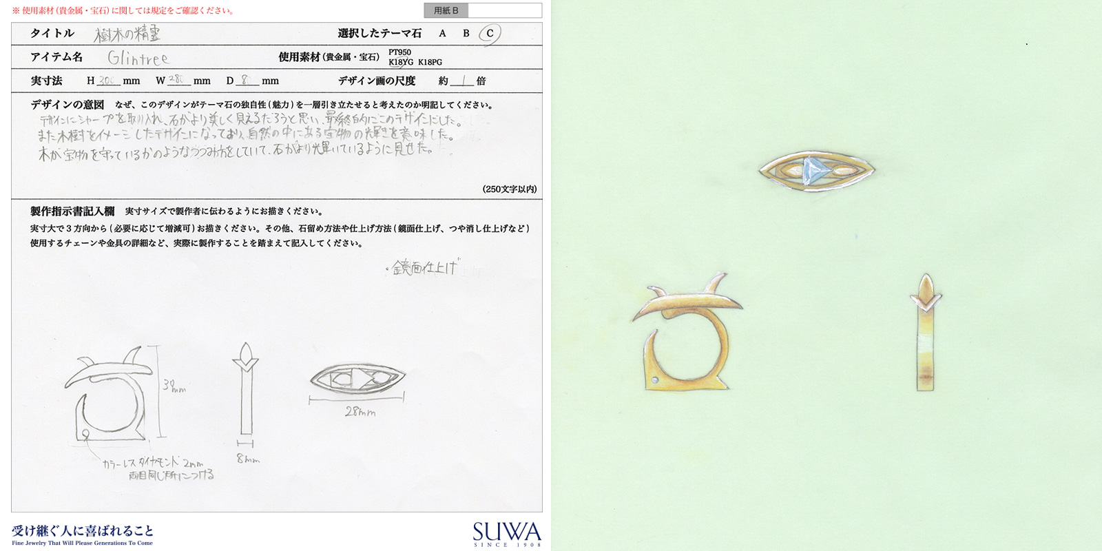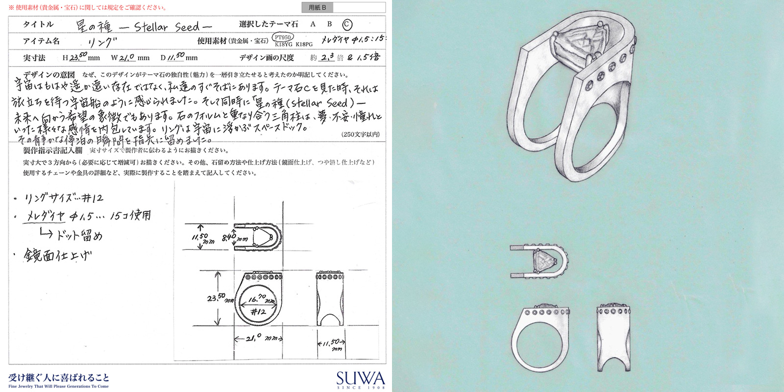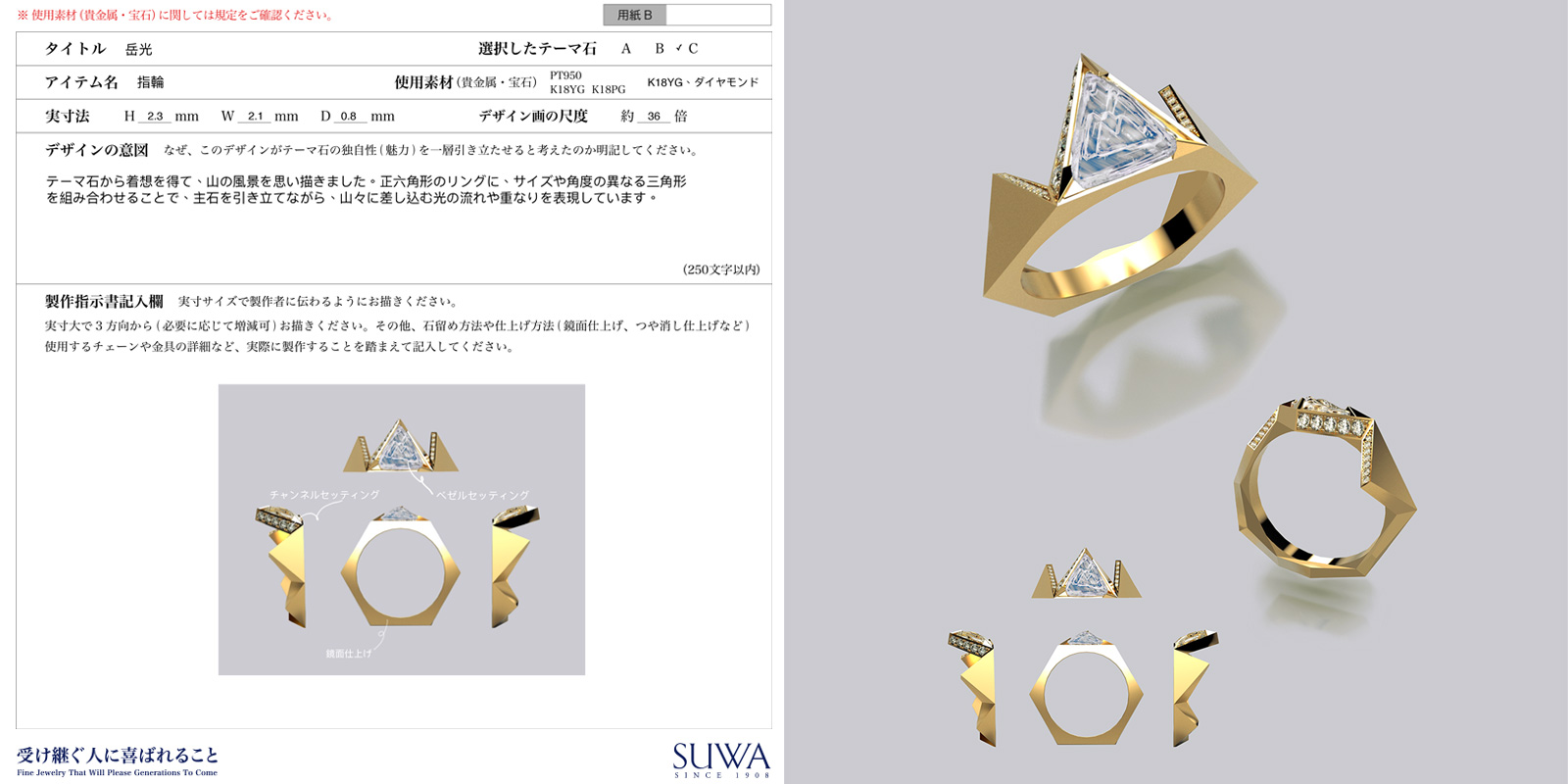 審査基準・独自性 アンカットダイヤモンド (人の手を加えていない、自然のままで美しいダイヤモンド) の魅力をより一層引き立てているか。