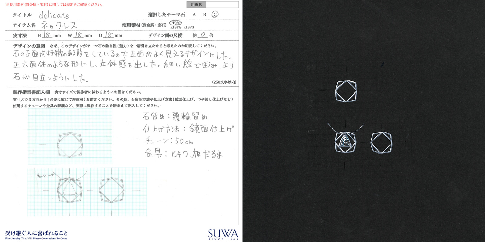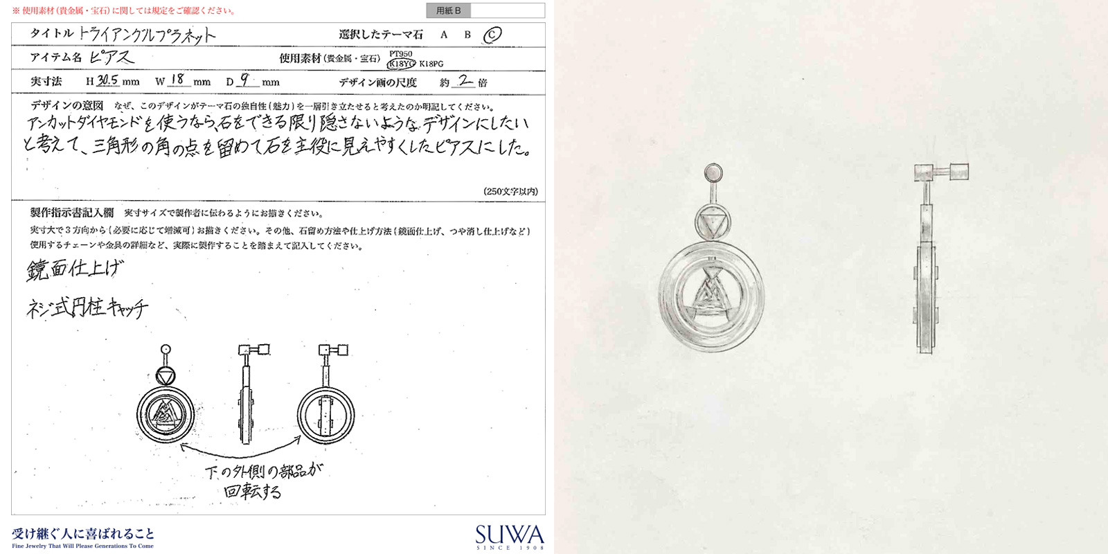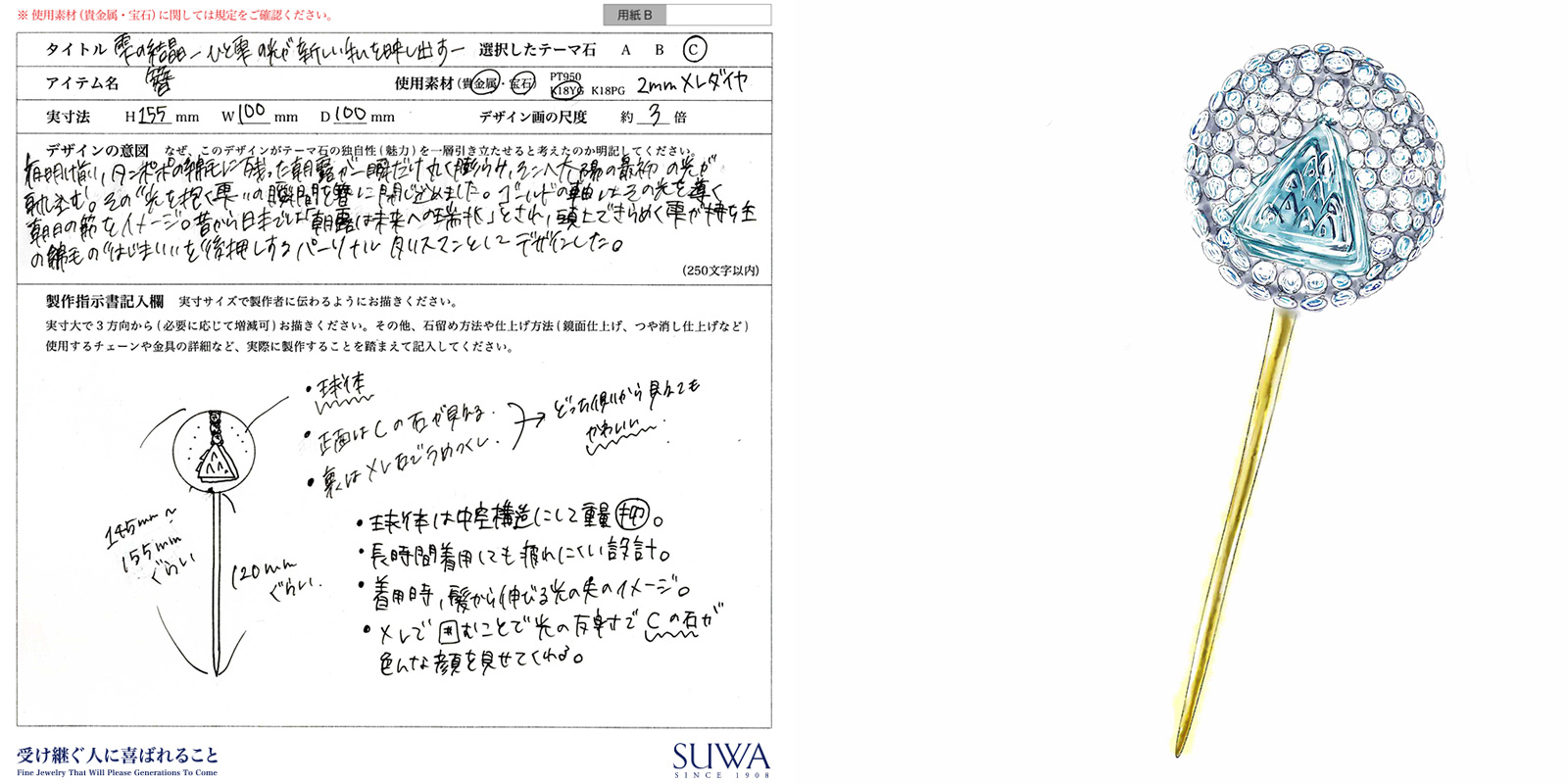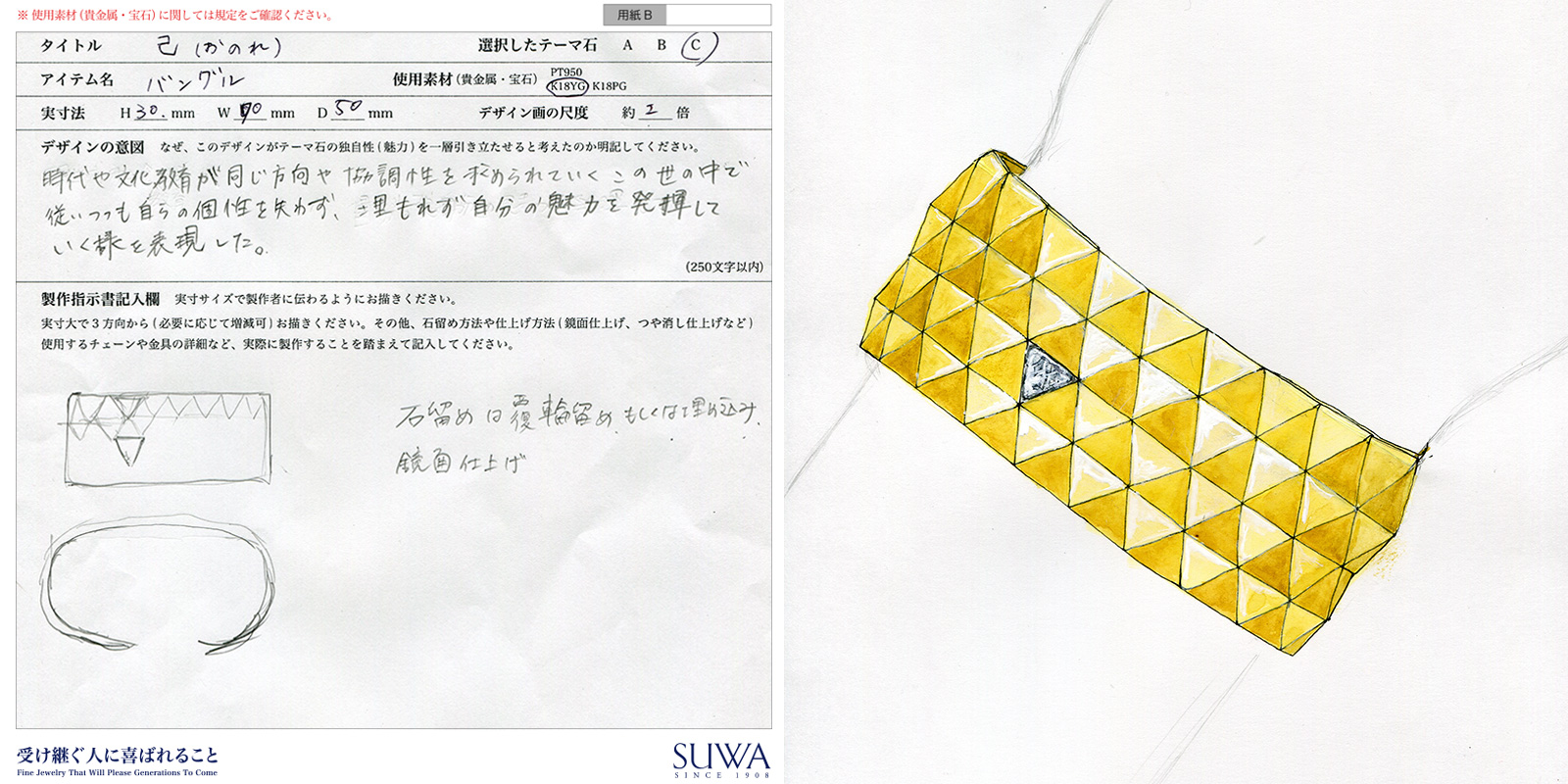 審査基準・独自性 アンカットダイヤモンド (人の手を加えていない、自然のままで美しいダイヤモンド) の魅力をより一層引き立てているか。
