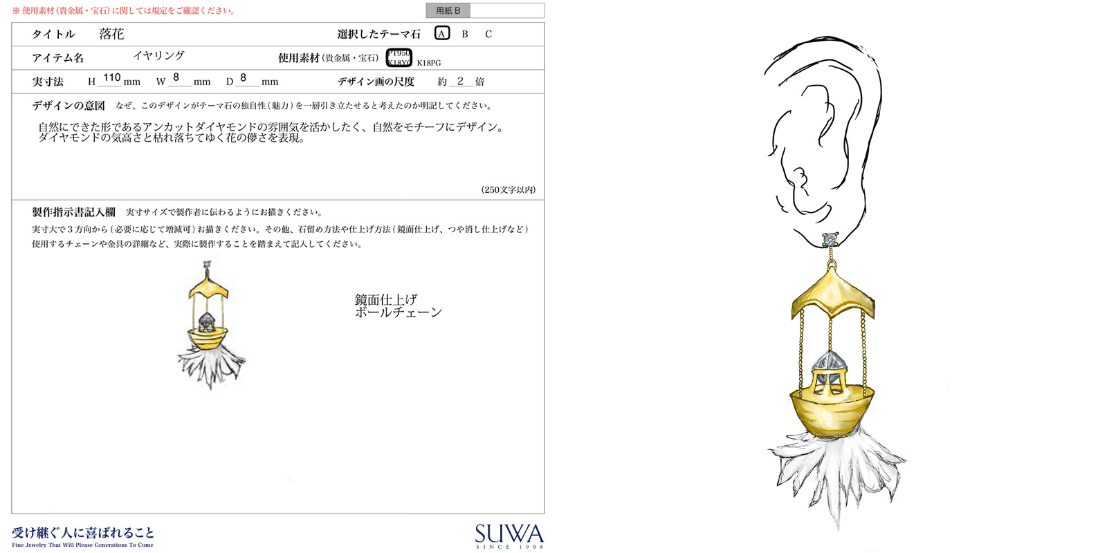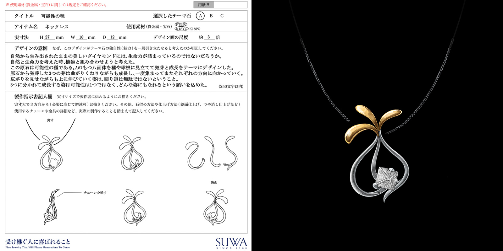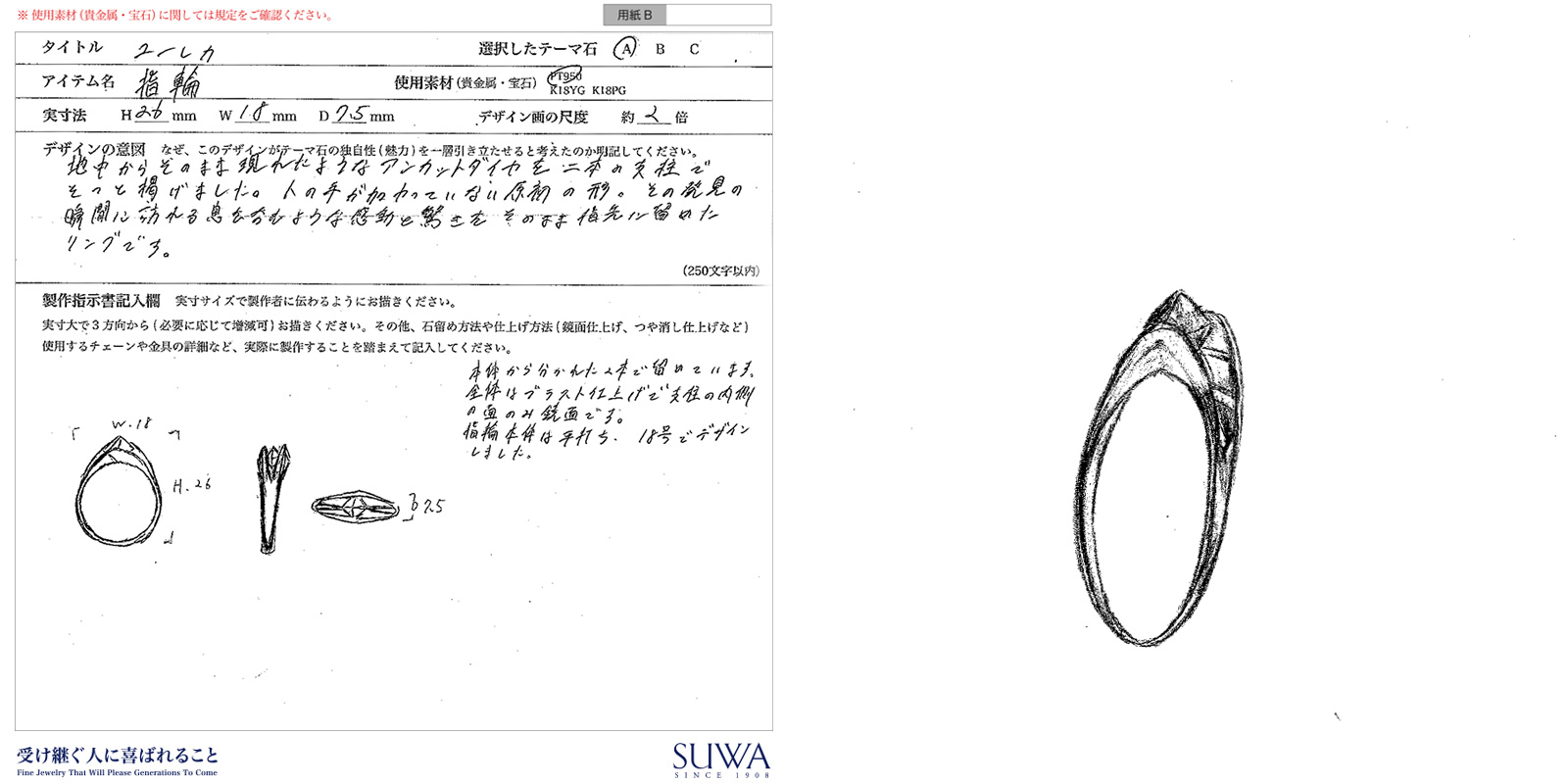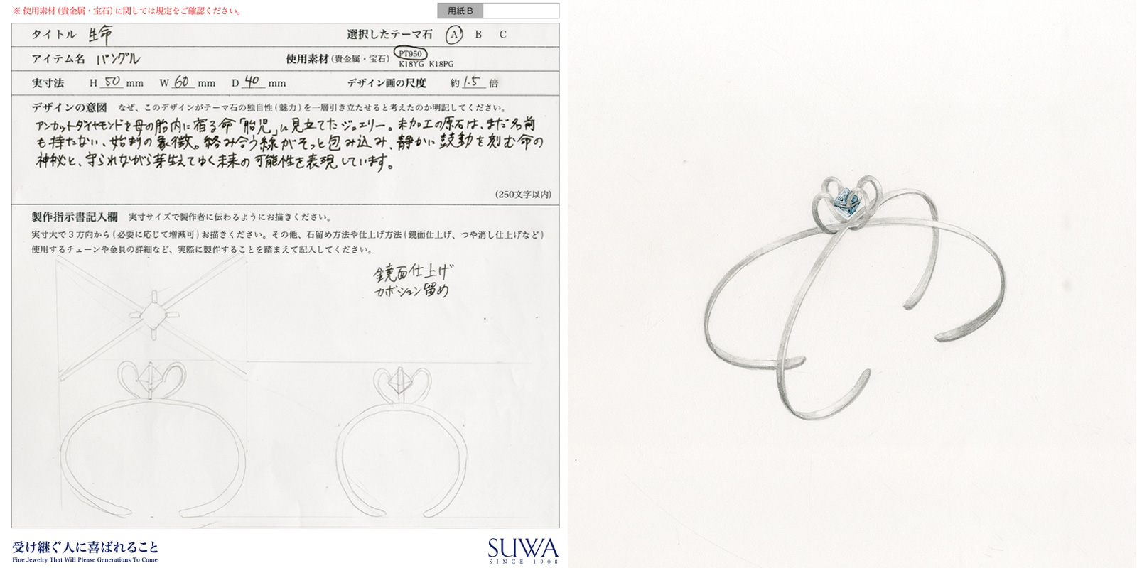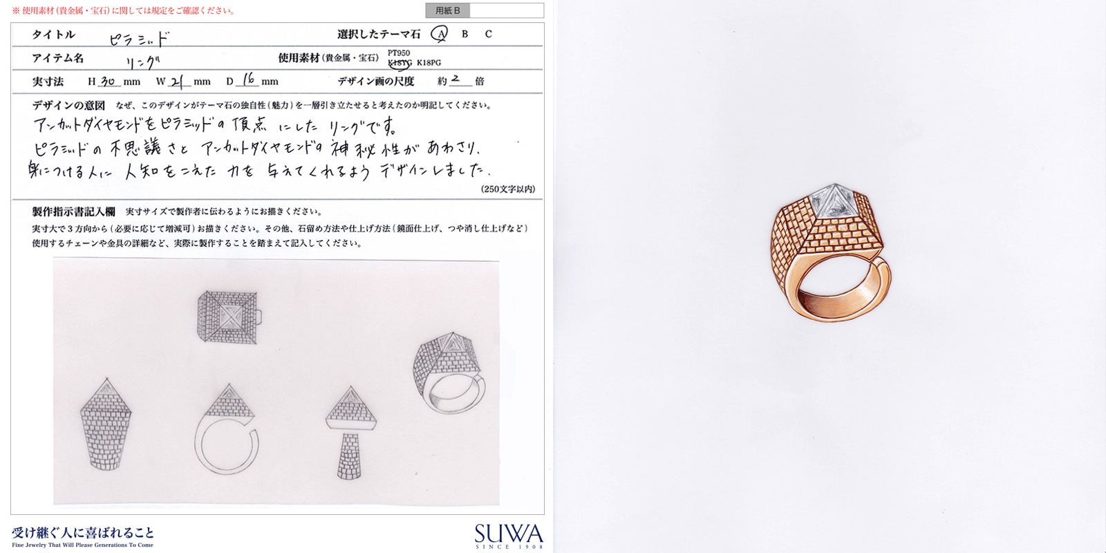 審査基準・独自性 アンカットダイヤモンド (人の手を加えていない、自然のままで美しいダイヤモンド) の魅力をより一層引き立てているか。