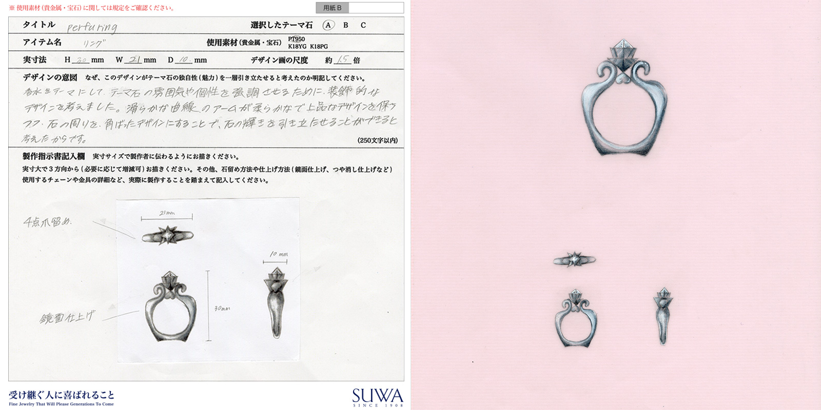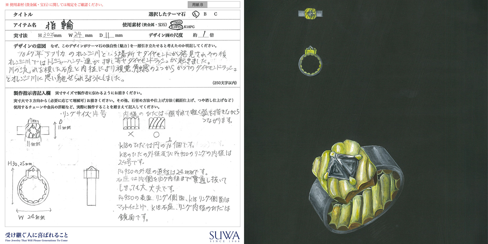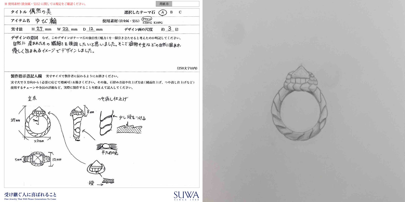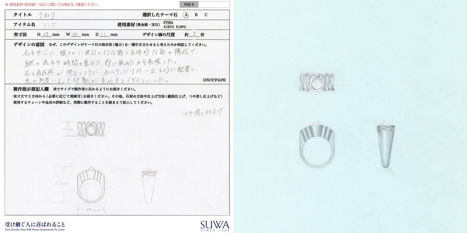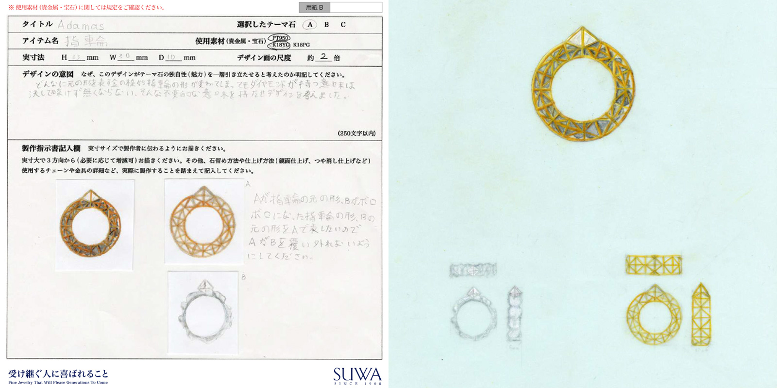 審査基準・独自性 アンカットダイヤモンド (人の手を加えていない、自然のままで美しいダイヤモンド) の魅力をより一層引き立てているか。