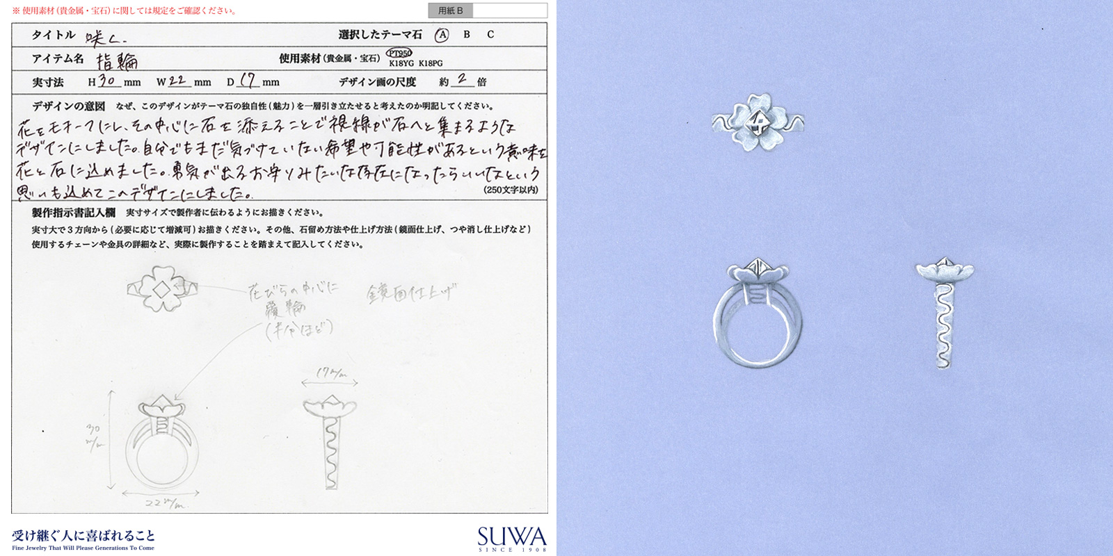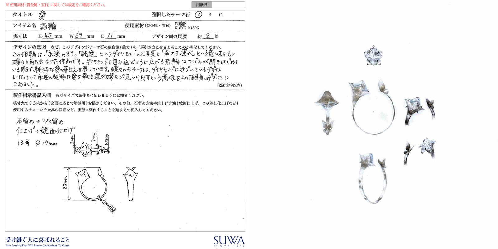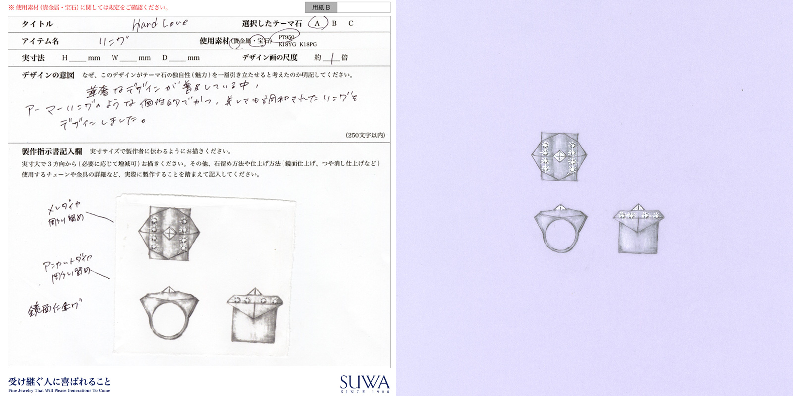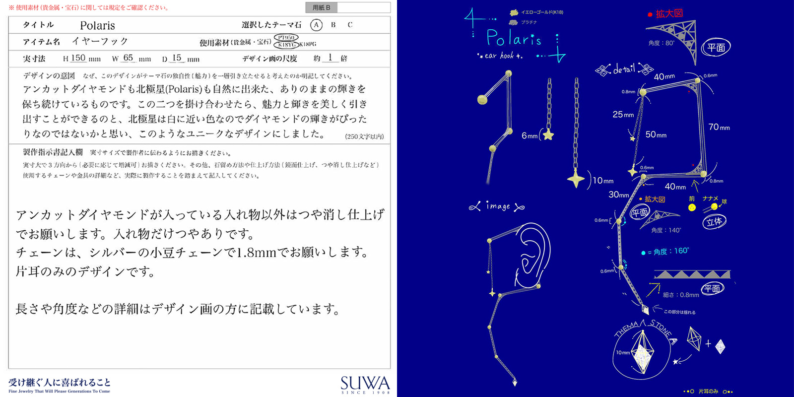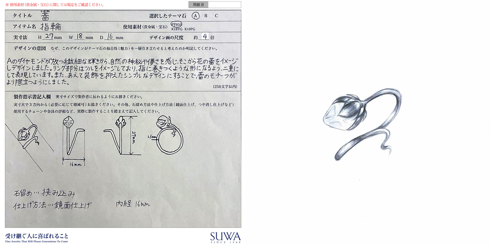 審査基準・独自性 アンカットダイヤモンド (人の手を加えていない、自然のままで美しいダイヤモンド) の魅力をより一層引き立てているか。