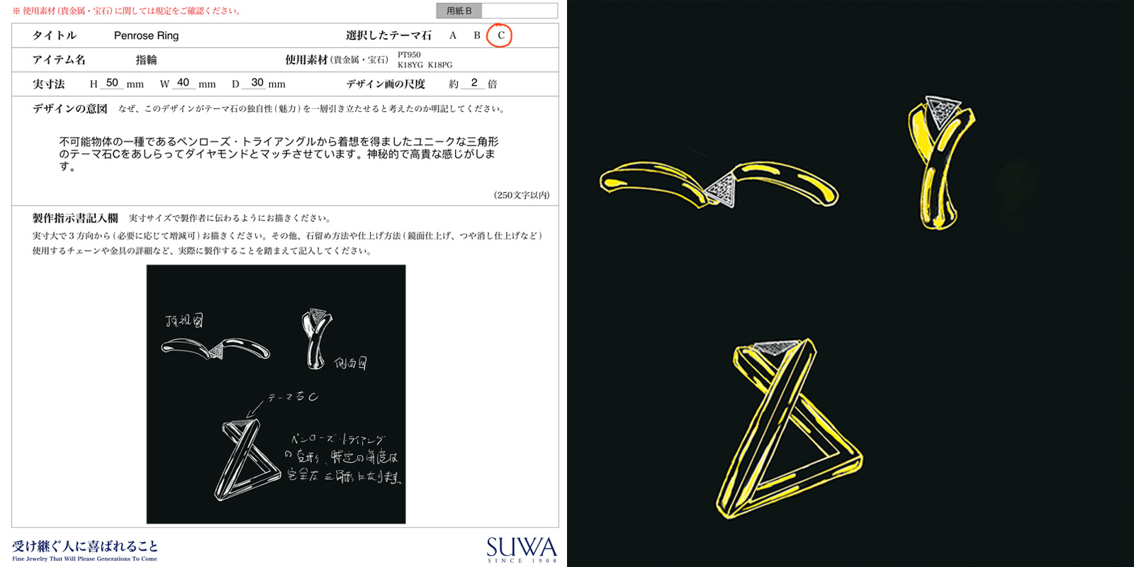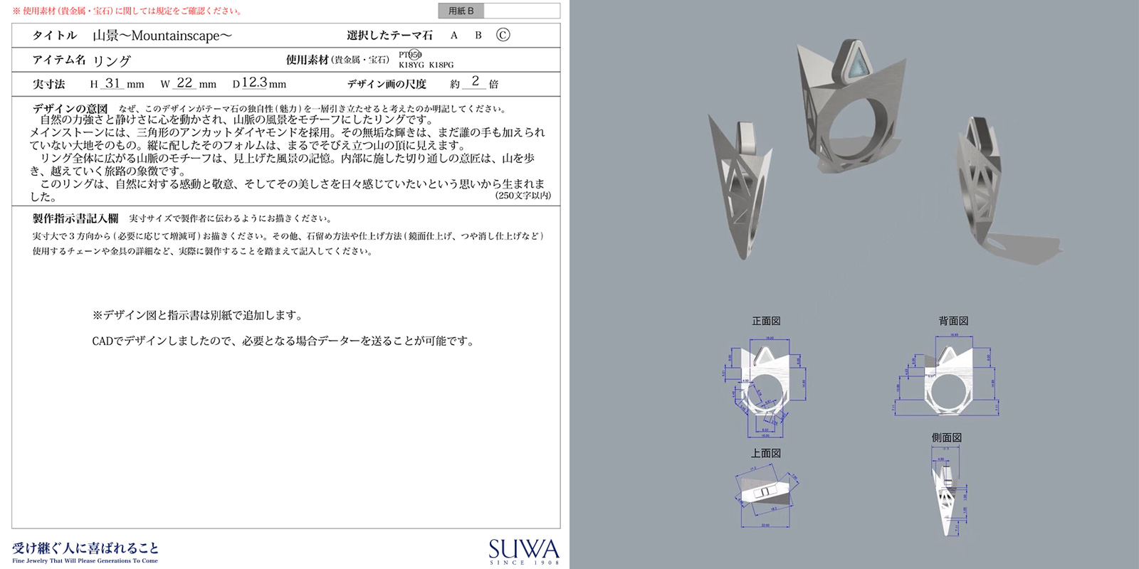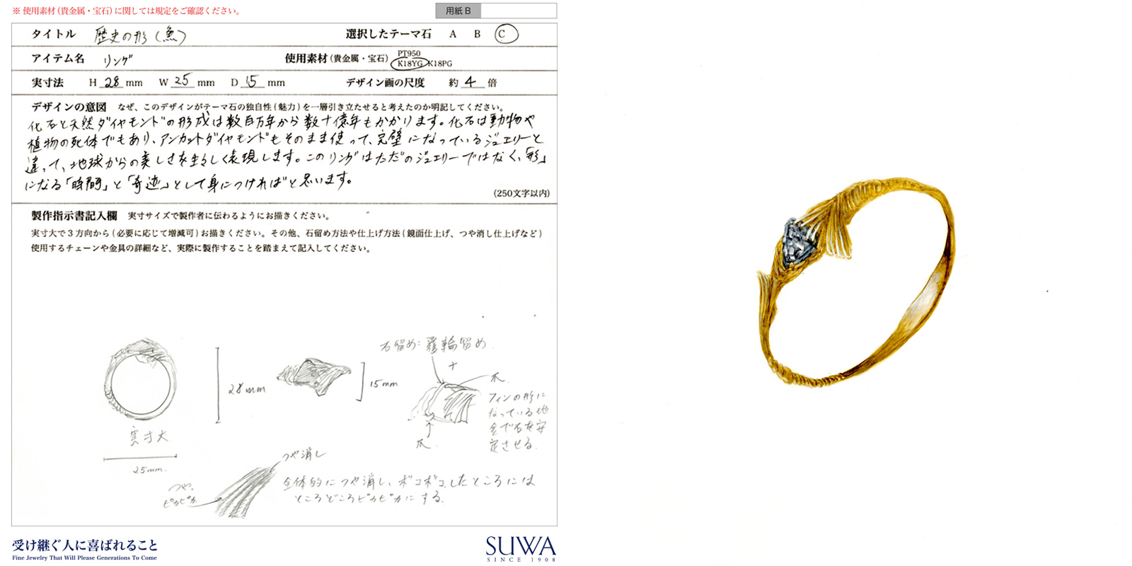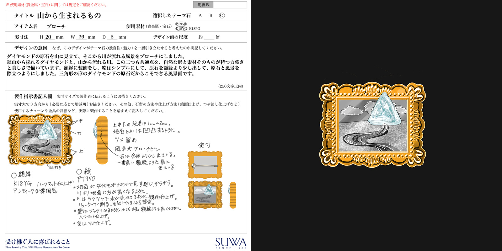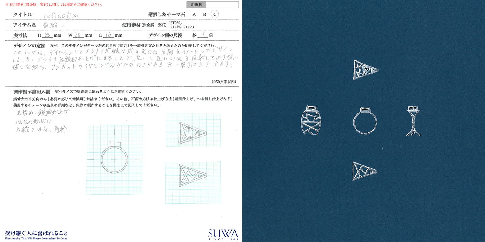 審査基準・独自性 アンカットダイヤモンド (人の手を加えていない、自然のままで美しいダイヤモンド) の魅力をより一層引き立てているか。
