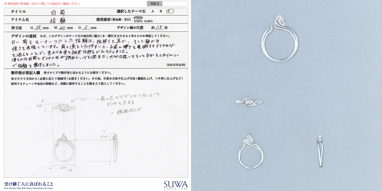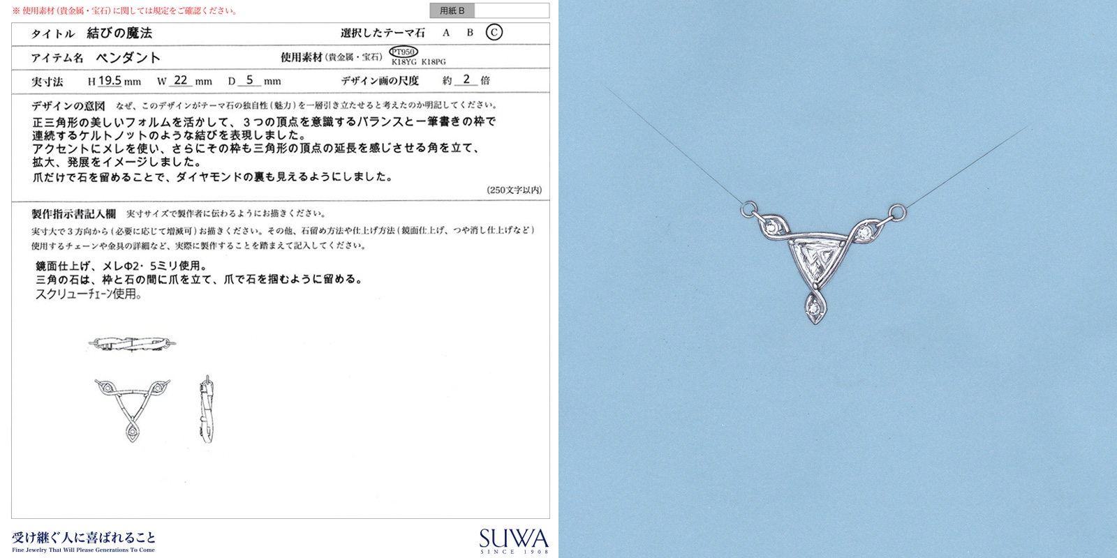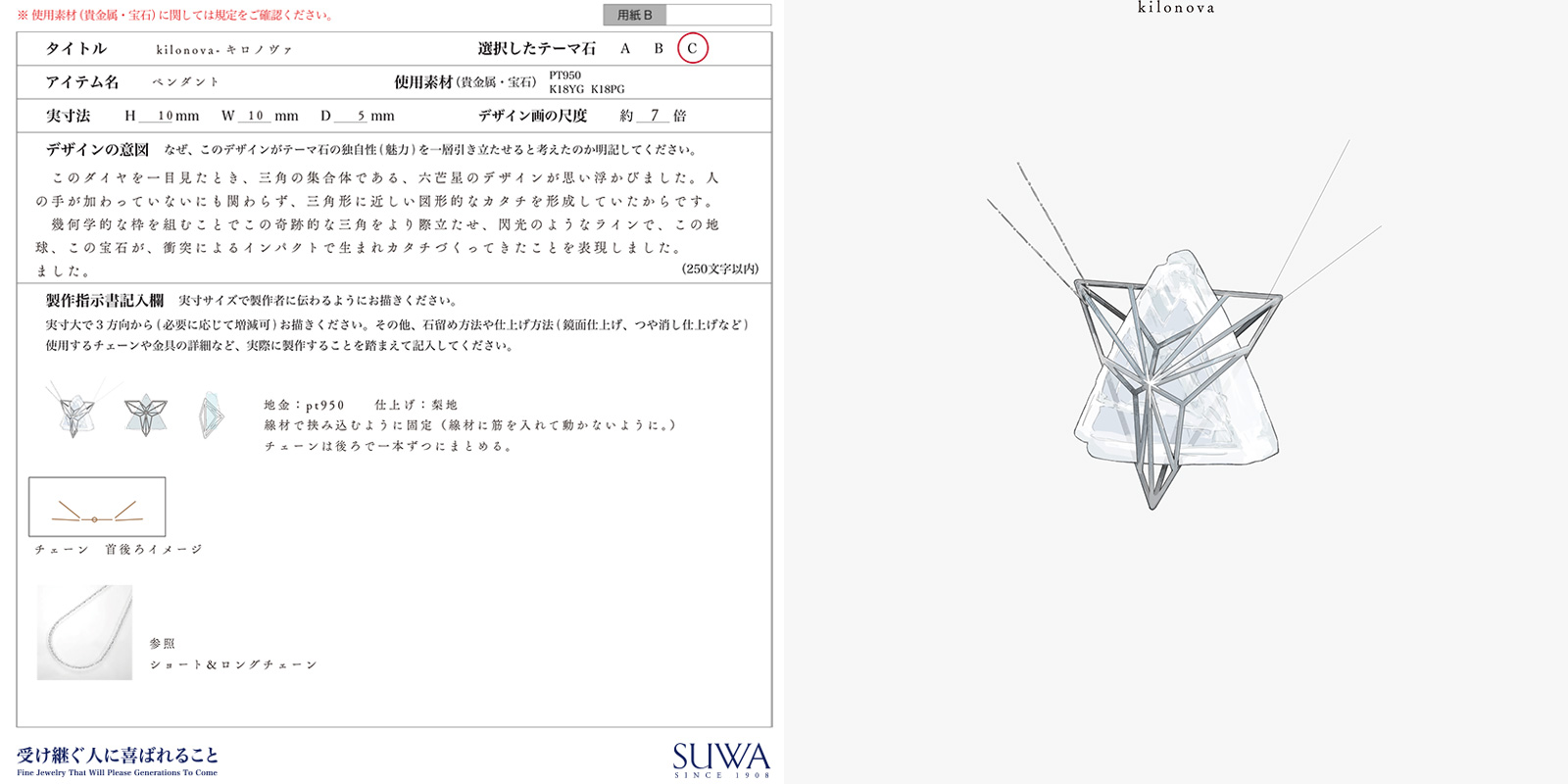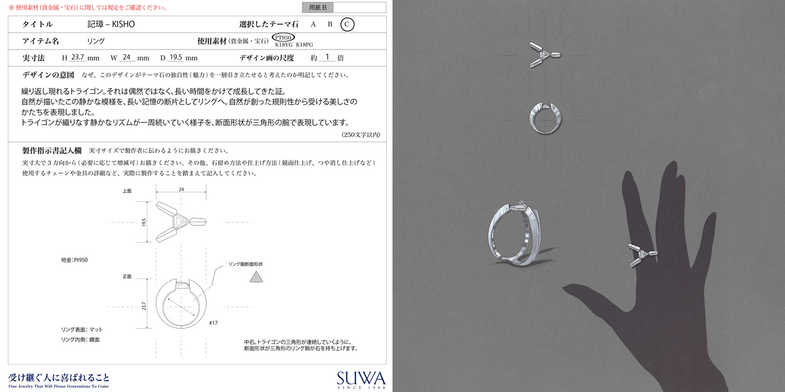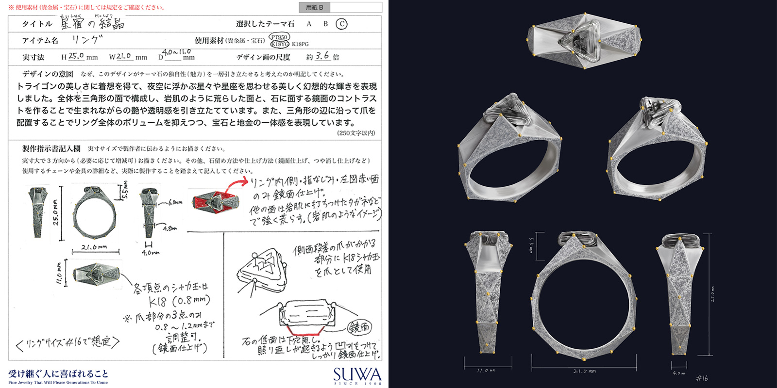 審査基準・独自性 アンカットダイヤモンド (人の手を加えていない、自然のままで美しいダイヤモンド) の魅力をより一層引き立てているか。